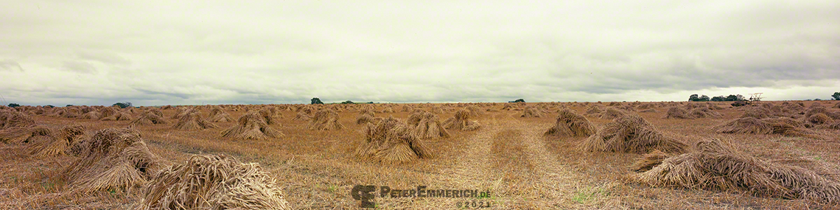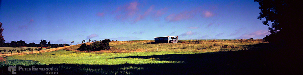 | Ungewöhlich an diesen Panoramen ist ihr breites Format. Die meisten analogen - und auch viele digitale - Panoramen werden mit einem Seitenverhältnis von 1 zu 2 oder maximal 1 zu 3 aufgenommen, auf Rollfilm als 6x17. Das ist das Format der klassischen Linhof Technorama 617, der Fuji G617 oder auch der vielen an Fachkameras ansetzbaren Panoramrückteile aus Fernost. Meine Panoramen sind breiter. Seitenformat 1 zu 4, 6x24cm... | | | | |